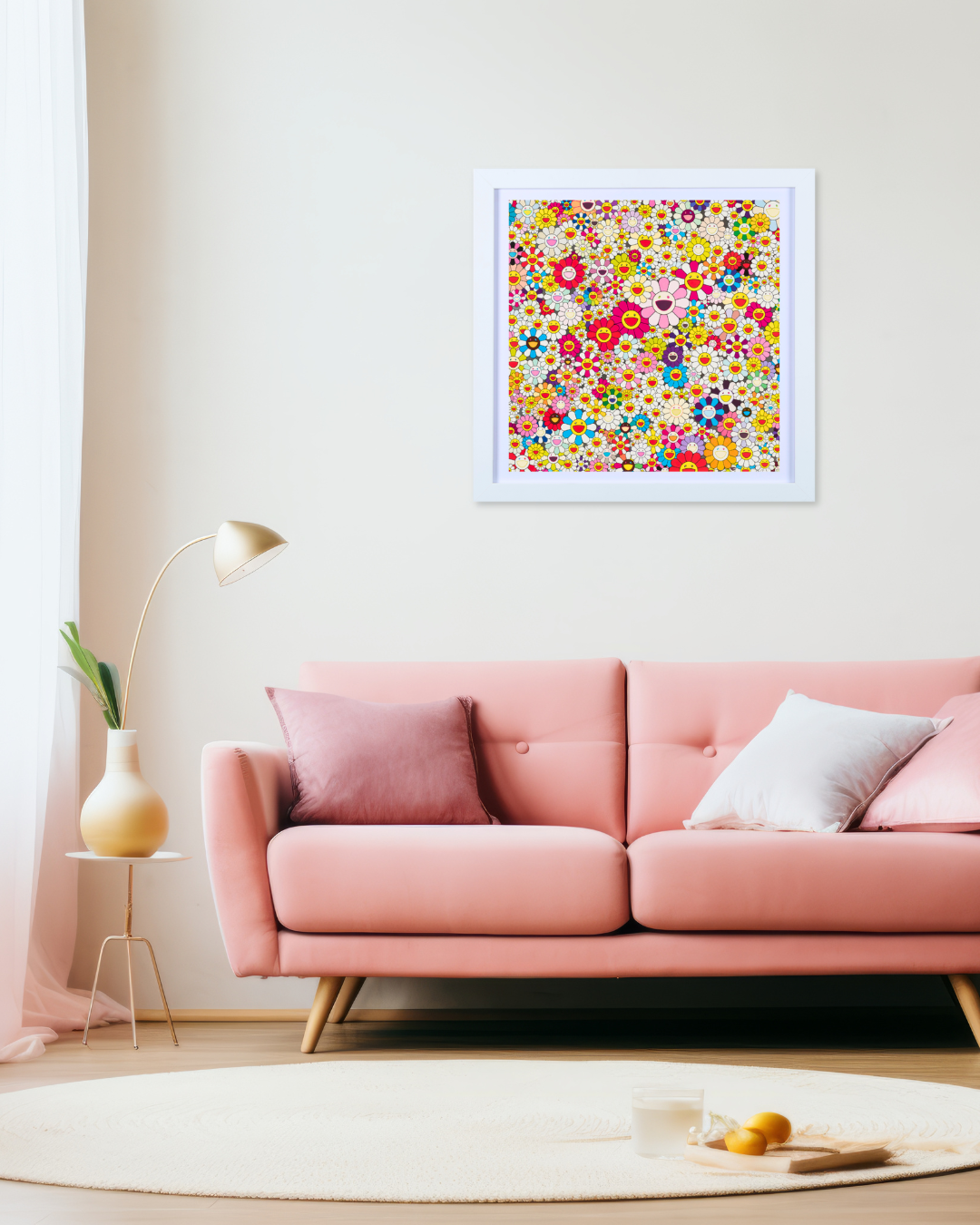 “Flowers in Heaven” represents one of the artist's most recognizable motifs and embodies his ability to combine pop aesthetics, traditional Japanese art and a subtle critique of modernity. It is a work that, despite its apparent simplicity, lends itself to multiple interpretations, celebrating the beauty and lightness, but also the repetitiveness of the contemporary world.